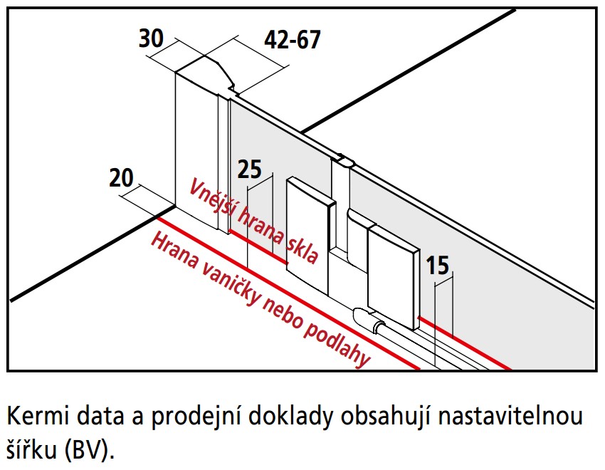 - Nastavitelná šířka ve stěnovém profilu 25 mm.