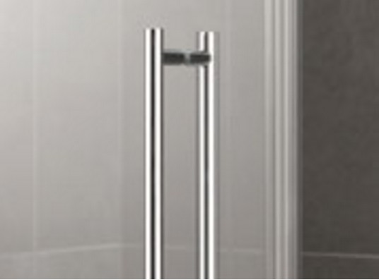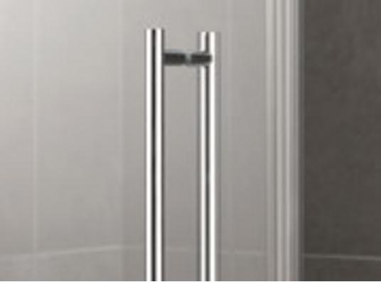 - Částečně rámový dvoukřídlý čtvrtkruhový sprchový kout s pevnými poli, s dveřmi otvíravými dovnitř i ven.