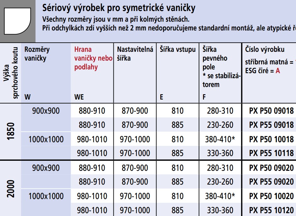 - Vhodné čtvrtkruhové symetrické vaničky.