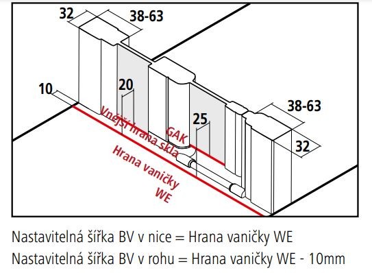 - Nastavitelná šířka v každém stěnovém profilu 25 mm.