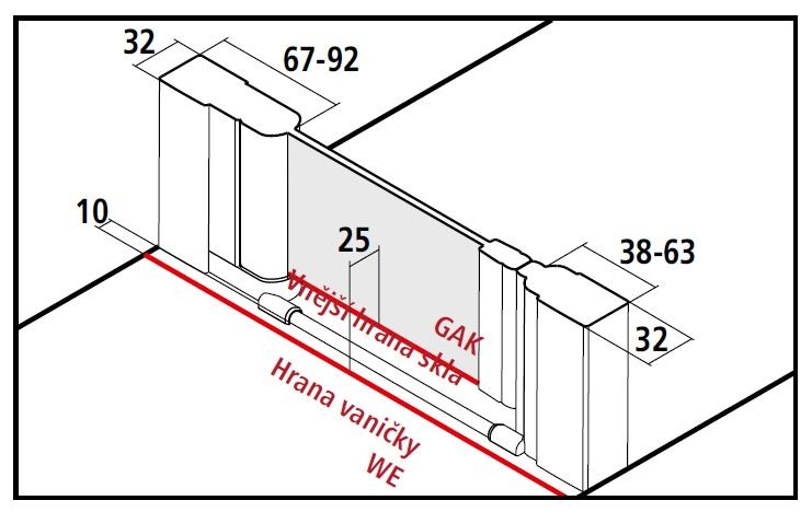 - Nastavitelná šířka v každém stěnovém profilu 25 mm.