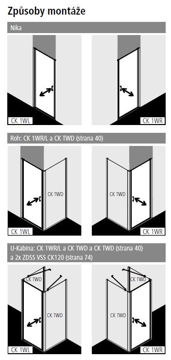 | Instalace | k montáži do niky a pro kombinaci s boční stěnou CK TWD |