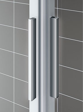 - U provedení v bílé barvě - madla, výklopný mechanismus, rohová spojka a koncovky prahové lišty v chromu.