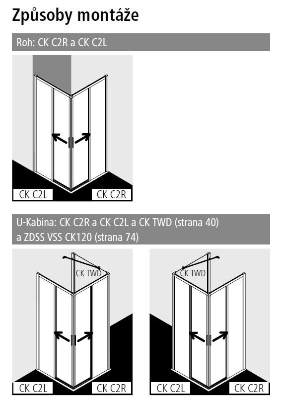 - Cena kompletního sprchového koutu je součtem ceny pravého polovičního dílu CK C2R a levého polovičního dílu CK C2L.