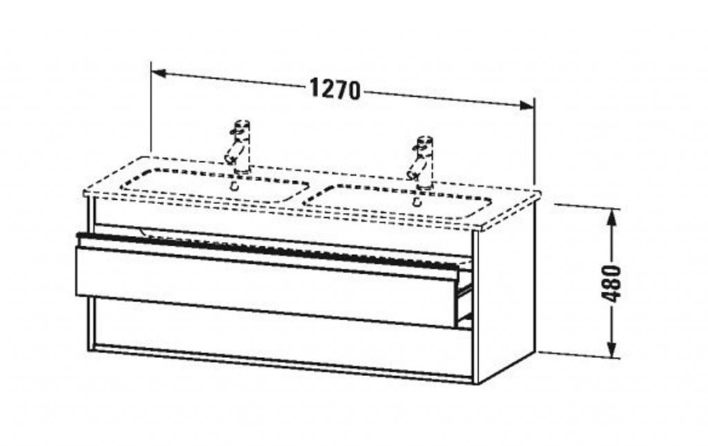- 2 x zásuvka, horní zásuvka s výřezem pro sifon a krytkou sifonu