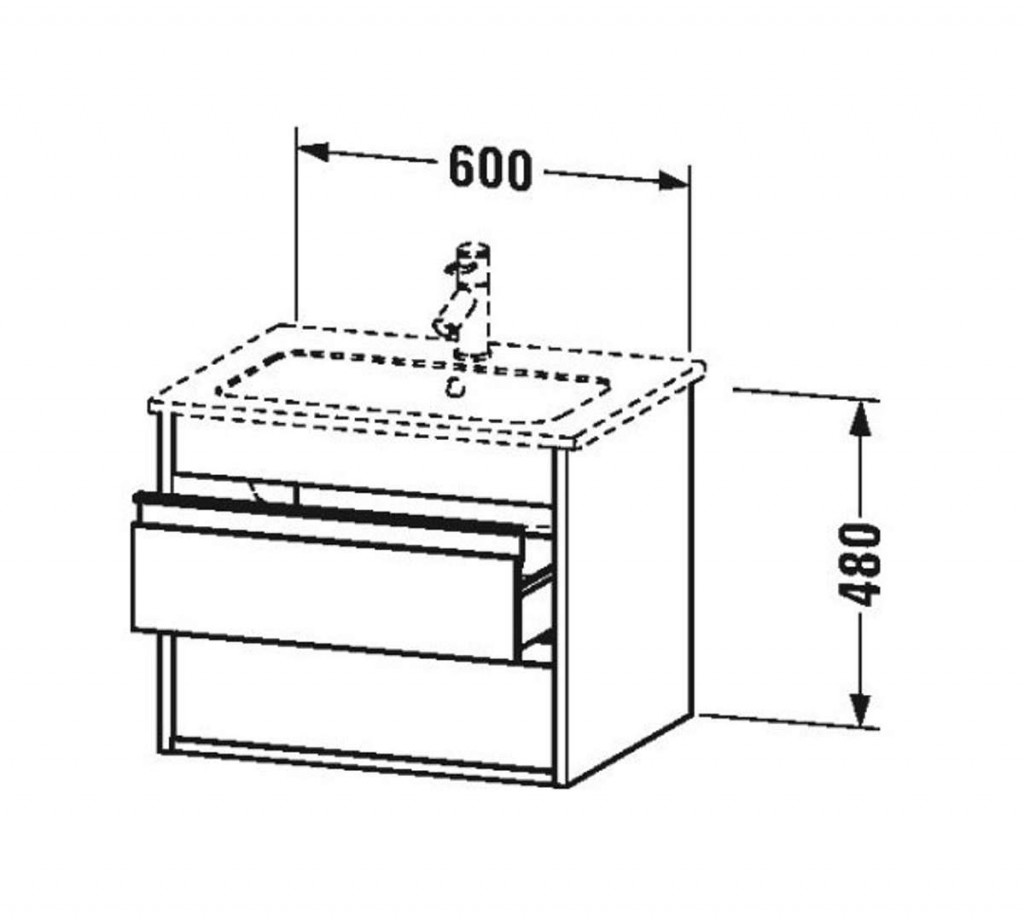 - 2 x zásuvka, horní zásuvka s výřezem pro sifon a krytkou sifonu
