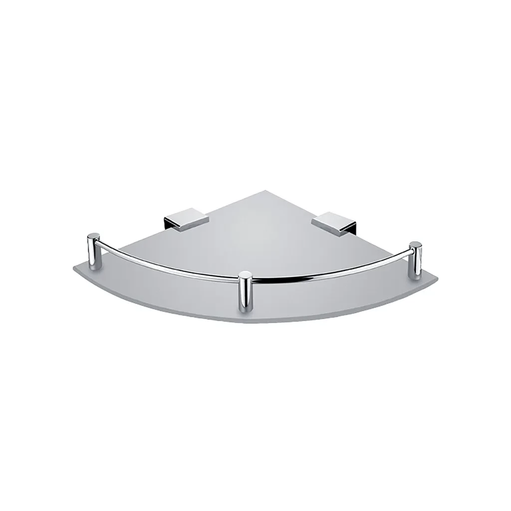Police rohová s ohrádkou. Sklo matované o poloměru 25 cm.