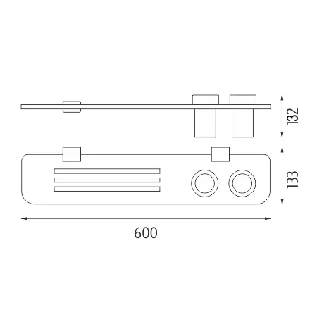 Police s frézovanými otvory s matovanými sklenkami. Délka matované police plexiglass 60 cm.