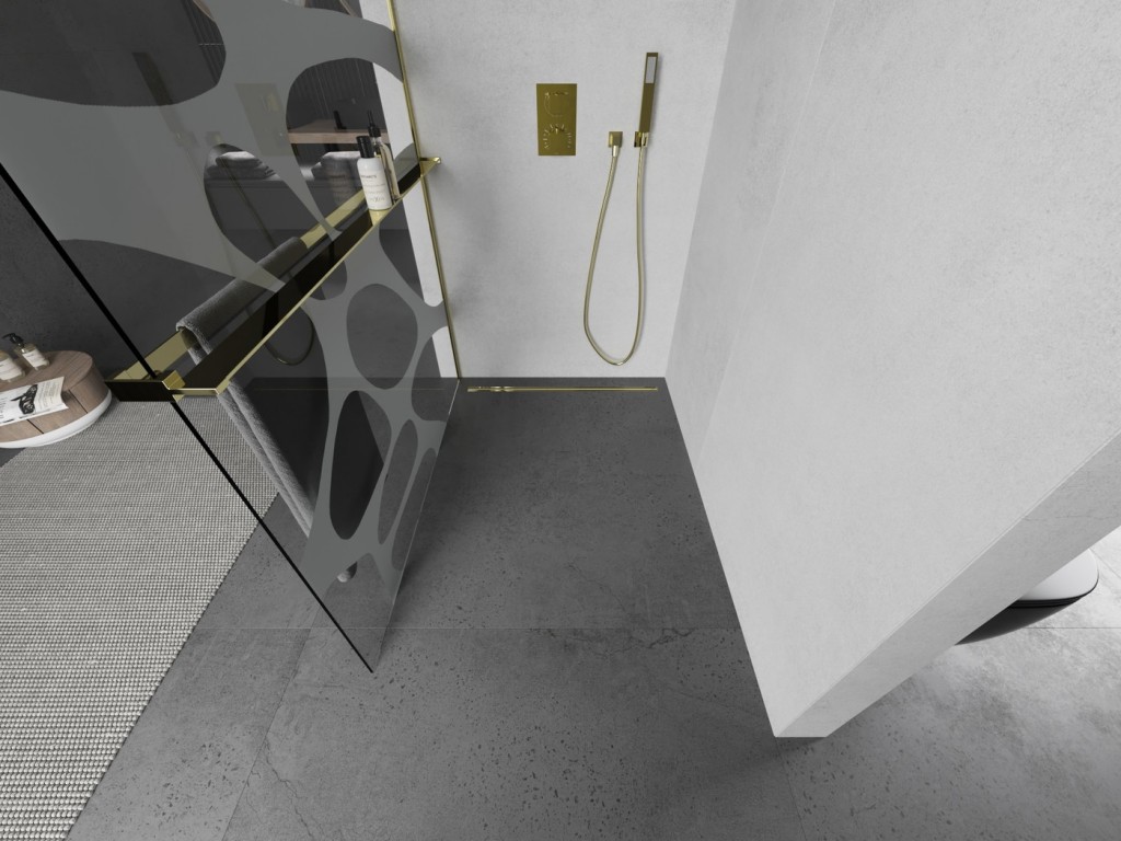 Sprchovou zástěnu je možné instalovat na sprchovou vaničku nebo přímo na podlahu s kombinací odtokového žlabu. Pokud vyberete odtokový žlab stejné barvy, jako máte profil, vzpěru a polici, bude sprchová část vypadat velmi elegantně.