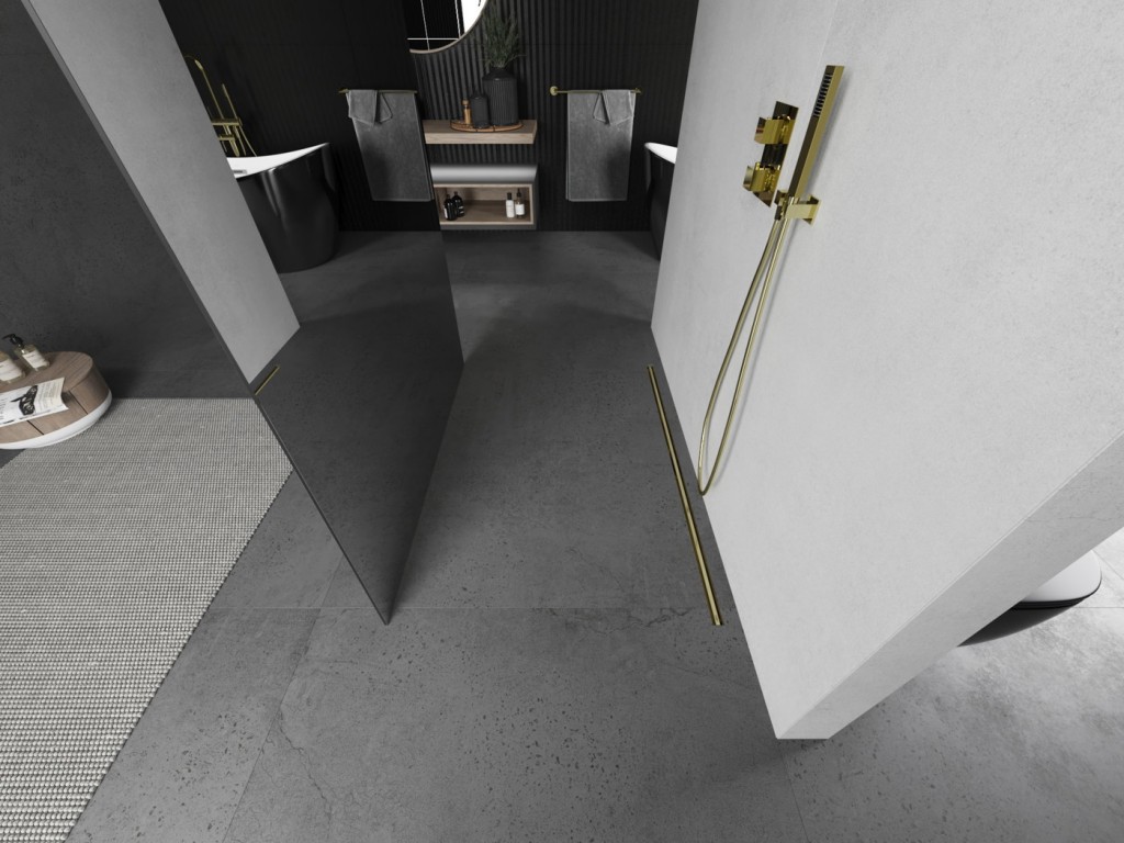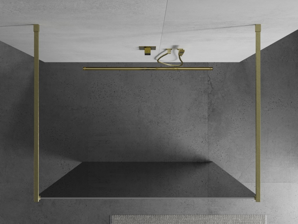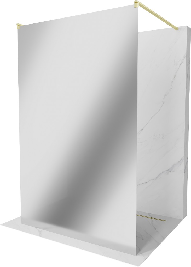 Walk-in sprchová zástěna KIOTO 130 x 200 cm, 8 mm - zrcadlové sklo, kartáčovo zlaté vzpěry