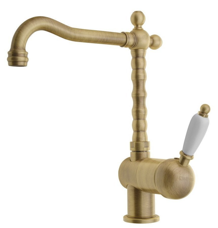 SAPHO - KIRKÉ WHITE stojánková dřezová baterie, bílá páčka, bronz (KI14BB)