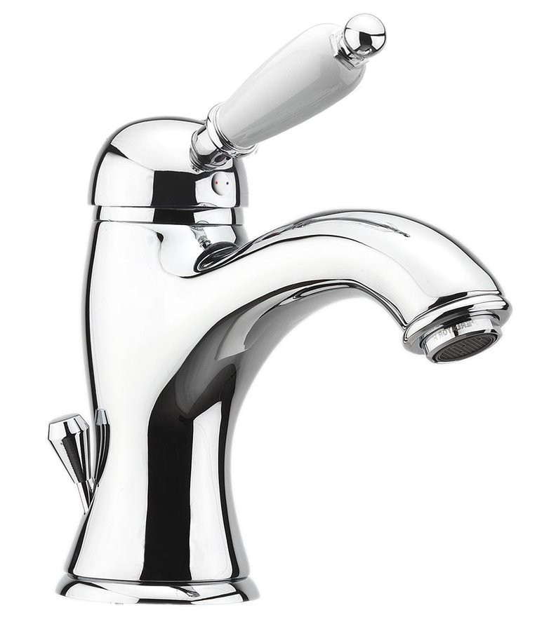 SAPHO - KIRKÉ WHITE stojánková umyvadlová baterie s výpustí, bílá páčka, chrom (KI02BC)
