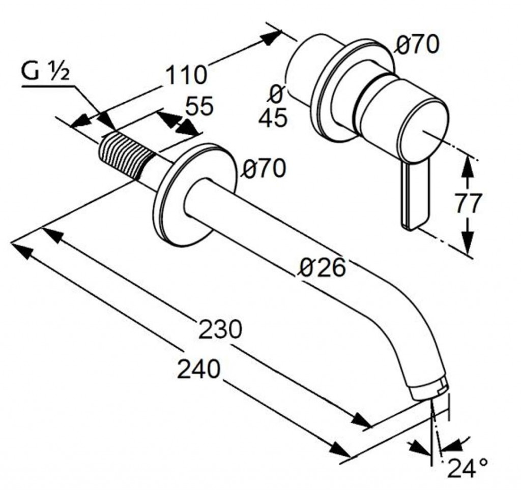 Instalace na podomítkové těleso, které je třeba objednat zvlášť.