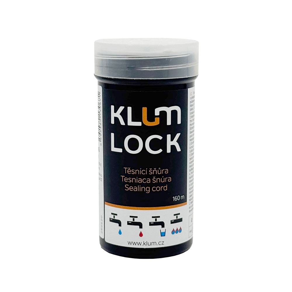 KLUMLOCK je dodáván v praktickém a obalu pro rychlé a snadné použití. Šňůra se navíjí na trubku nebo tvarovku přímo z obalu a po namotání potřebné délky se pomocí praktického nožíku uřízne.