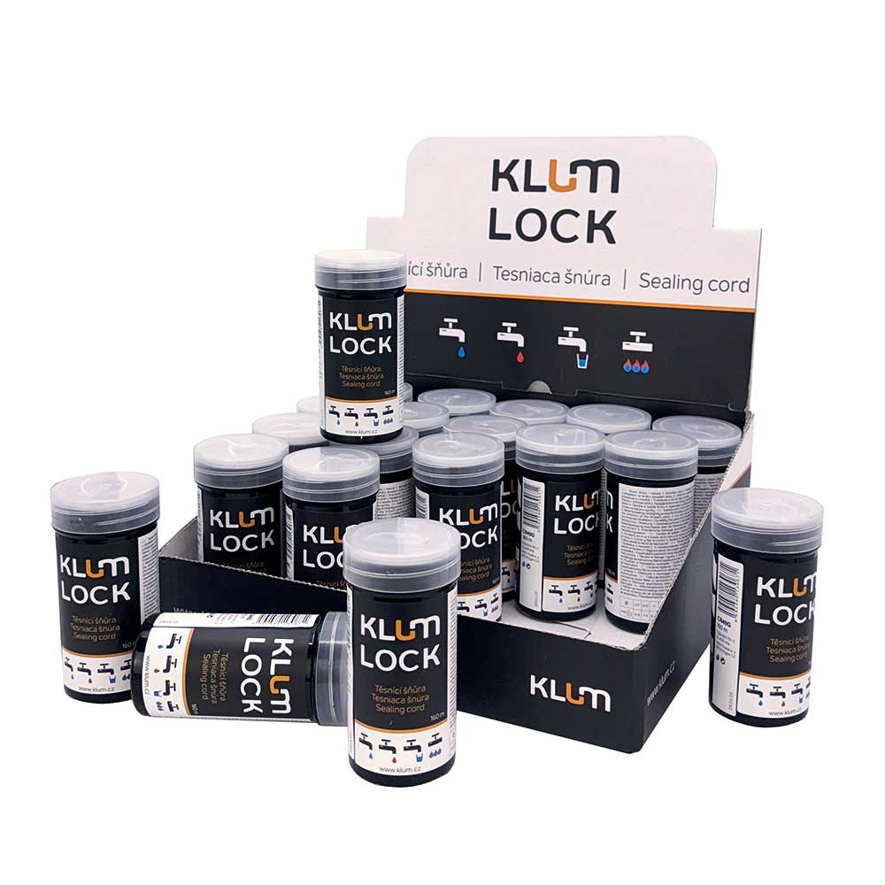 KLUMLOCK je dodáván v praktickém a obalu pro rychlé a snadné použití. Šňůra se navíjí na trubku nebo tvarovku přímo z obalu a po namotání potřebné délky se pomocí praktického nožíku uřízne.