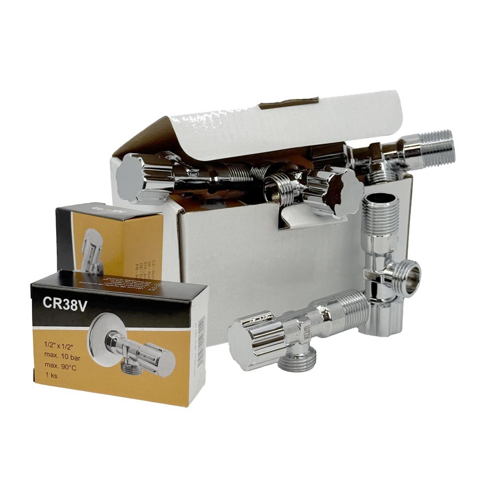 Klum rohový ventil s vřetenem, 1/2" × 1/2" – pochromovaná mosaz, kulatý design