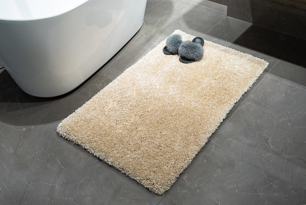 Koupelnový koberec Q-BATH se vyznačuje extrémně měkkým, dlouhým a hustým vlasem, který dodává interiéru útulnou a hřejivou atmosféru. Je vyrobena z na dotek příjemného mikrovlákna, které se díky svým schopnostem pohlcování vody skvěle hodí do místností se zvýšenou vlhkostí. Má protiskluzové dno zajišťující pohodlí a bezpečnost používání. Koupelnový koberec je vhodný na podlahové vytápění.
