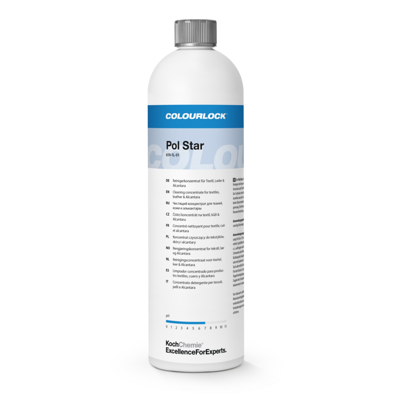 POL STAR je neutrální čistící prostředek na textilie, kůži a Alcantaru s konzervační látkou. Přípravek POL STAR narušuje a vytahuje nečistoty z hloubky vláken, které se dají vysát vysavačem na mokro / sucho nebo setřít vlhkou utěrkou. Nezanechává mapy. Zároveň zajistí originální impregnaci a tím chrání vyčištěnou plochu před opětovným znečištěním.