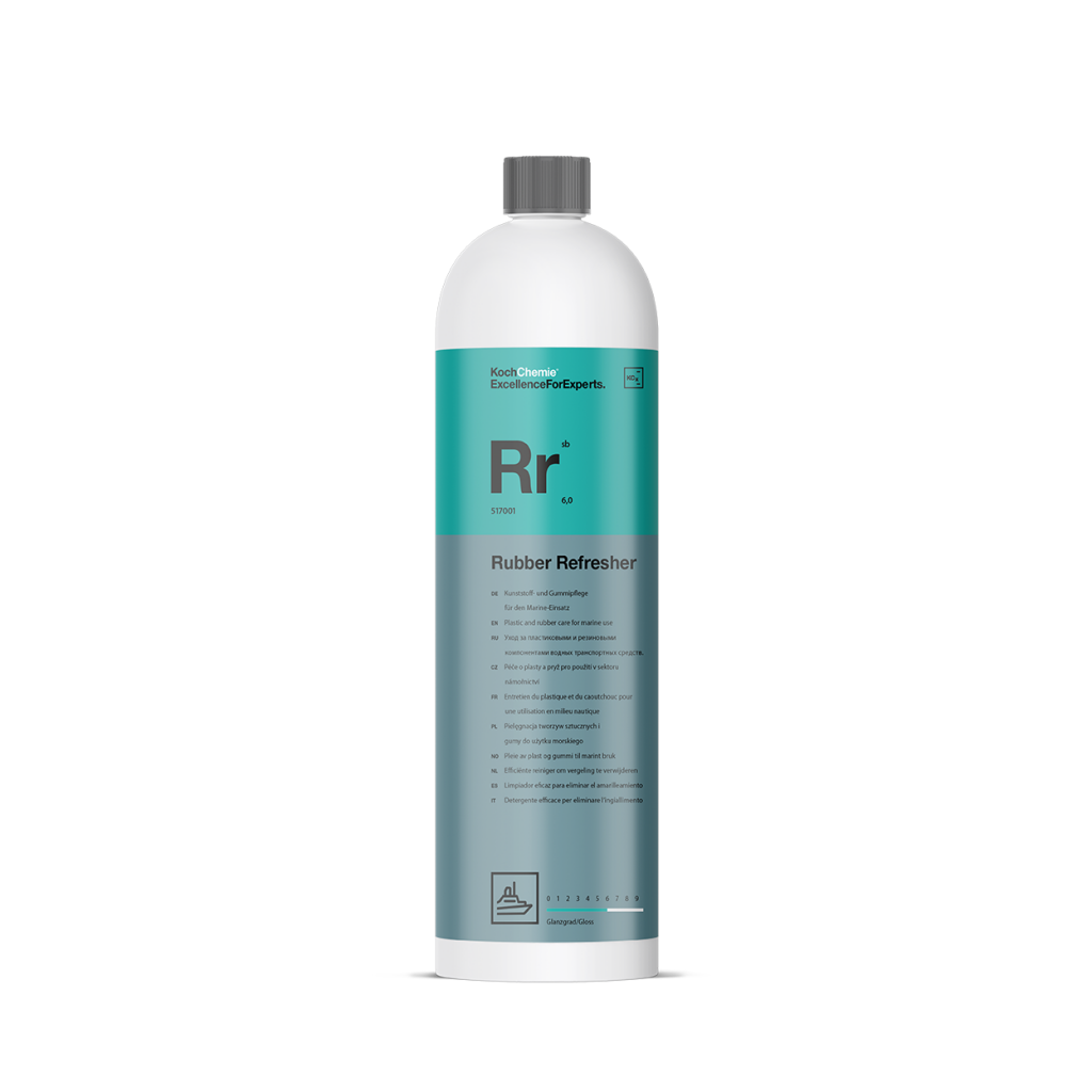 Popis přípravku: Prémiový produkt pro dlouhodobou péči a konzervaci se špičkovou vrchní vrstvou pro nelakované plasty, PVC a pryž. Mikroemulze neobsahující silikonový olej se obzvláště snadno zpracovává a nerozpouští povrchy, a proto nevytváří lepkavá místa. Propůjčuje pryžovým/plastovým odrazným trámům, plastovým nárazníkům a dalším pryžovým dílům na lodi nový vzhled. Vhodný také pro oživení opláštěných drátu lodního zábradlí nebo silně zvětralých nafukovacích člunů. Rubber Refresher je odolný vůči UV záření, a proto je vhodný zejména do slunných oblastí. Extrémně dlouhá životnost a velmi dobrá hydrofobie se zvýrazněním barev. Není nutné doleštění. Optimalizovaný pro slanou vodu.