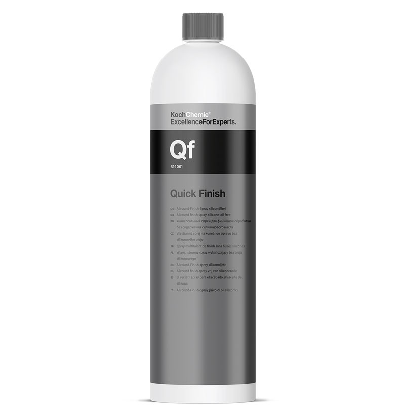 Popis přípravku: QUICK FINISH bez silikonu je multifunkční detailer na čištění všech lakovaných povrchů, umělých hmot, kokpitů, displejů, skleněných vysoce lesklých ploch, klavírových laků. Také vhodný na dřevěný a ušlechtilý interiér vozidla. Čistí, udržuje, chrání a konzervuje v jednom pracovním procesu. Ošetřené povrchy získají vysoký lesk a hladkost beze šmouh. Otisky prstů a lehká znečištění budou rychle a jednoduše odstraněny. Případné dřívější nanesené politury a udržovací přípravky nebudou odstraněny. Přípravek je ideální pro prezentaci vozidel na výstavách (ve výstavních místnostech) díky svému rychlému a jednoduchému použití.