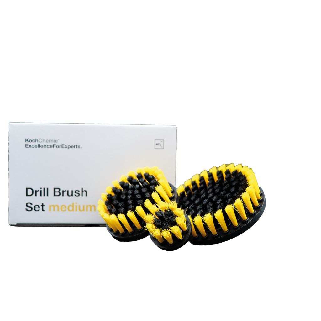 Popis přípravku: Sada Drill Brush se skládá ze tří částí a je k dostání ve dvou různých stupních tvrdosti. Sady Drill Brush lze snadno rozlišit podle barevného označení. Žlutá sada se střední tvrdostí štětin je ideální na textilie a necitlivé plastové díly v interiéru vozidla. Červená sada je vhodná pro hrubé práce v nákladovém prostoru nebo interiéru vozidla. Použitím se všemi běžnými aku šroubováky lze nečistoty odstranit rychle a efektivně. Sadu lze optimálně uložit do praktického obalu v designu KCX.