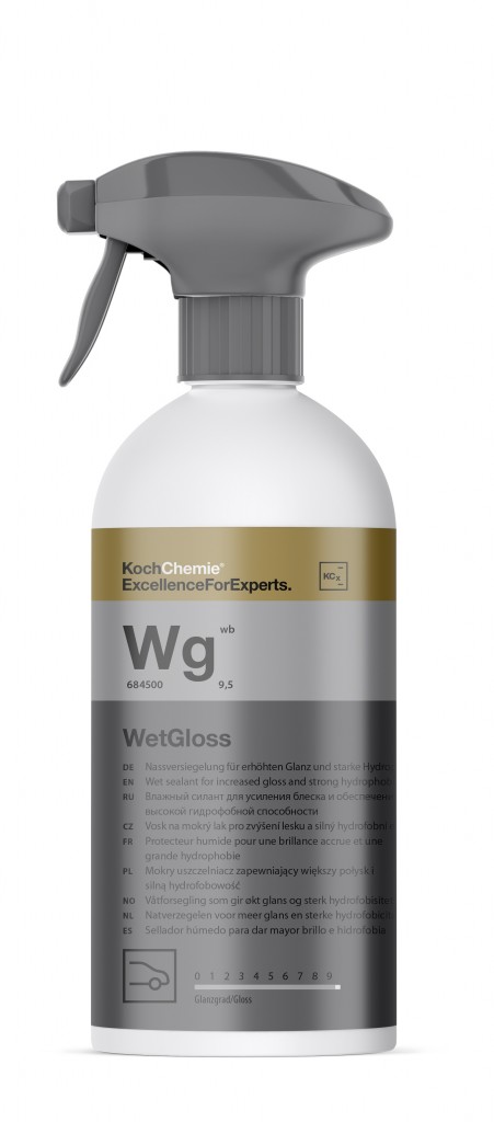 Popis přípravku: WetGloss je vysoce účinný vosk na mokrý lak pro všechny vnější povrchy vozidel. Přípravek vytváří mimořádně hladký, lesklý a vysoce hydrofobní povrch. WetGloss lze použít jako samostatný vosk nebo jako vrchní vrstvu na stávající keramický nátěr. Je připraven k použití, snadno se nanáší, příjemně voní a poskytuje dlouhotrvající ochranu po dobu několika týdnů.