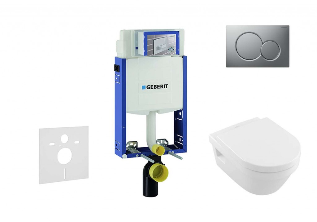 Set předstěnové instalace, klozetu a sedátka Villeroy & Boch, tlačítka Sigma01, matný chrom