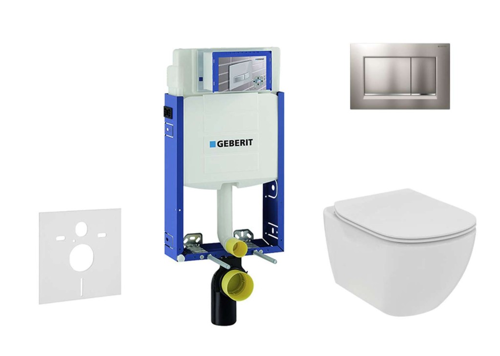 Set předstěnové instalace, klozetu a sedátka Ideal Standard Tesi, tlačítka Sigma20, chrom mat/chrom