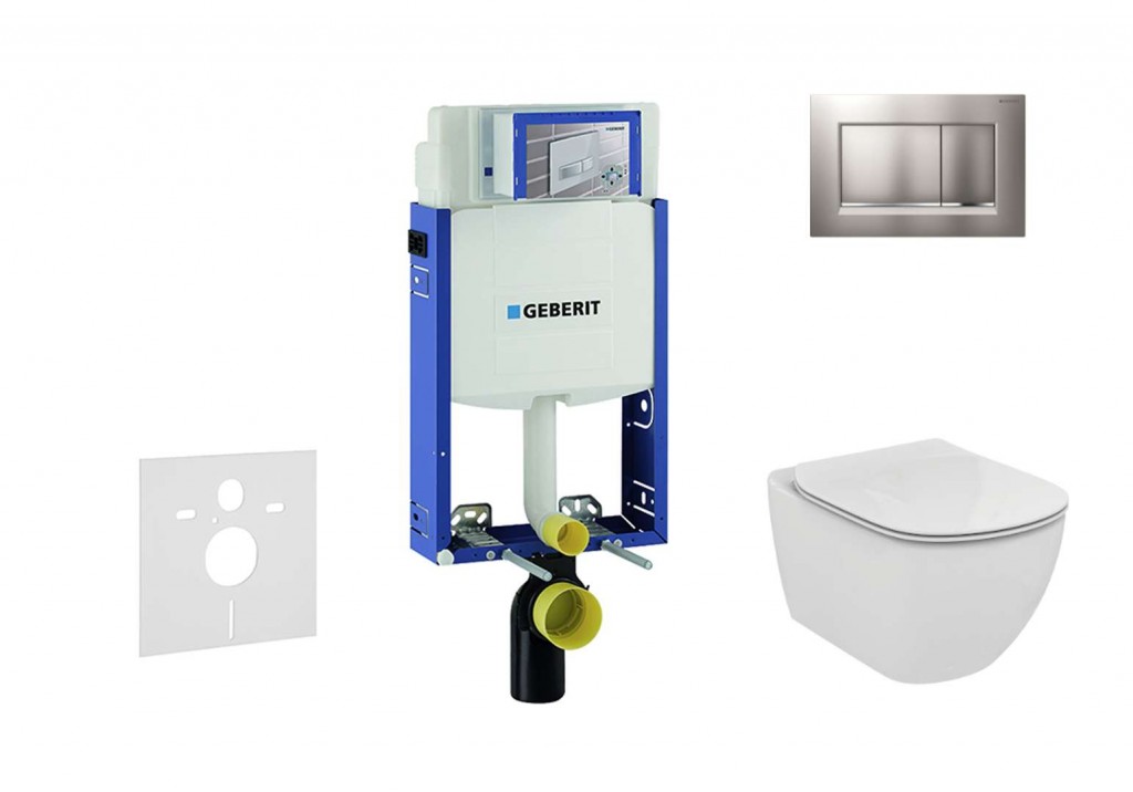 Set předstěnové instalace, klozetu a sedátka Ideal Standard Tesi, tlačítka Sigma20, chrom mat/chrom