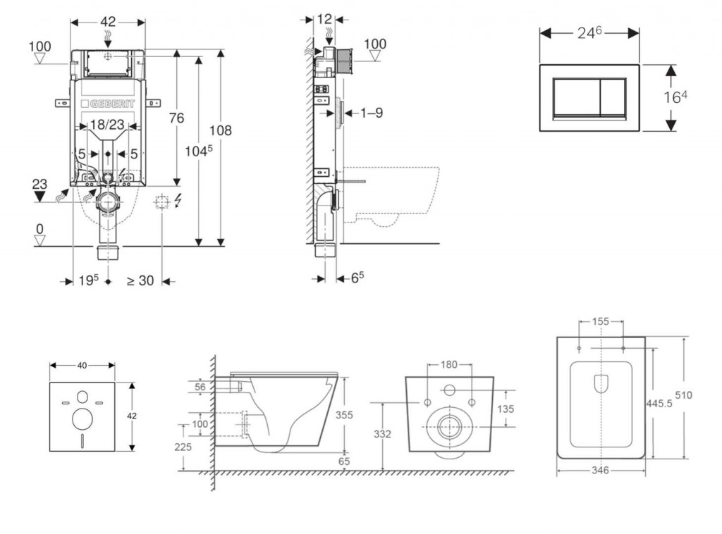 - vybaven trubkovou chráničkou pro přívodní potrubí k připojení sprchovacích WC Geberit AquaClean