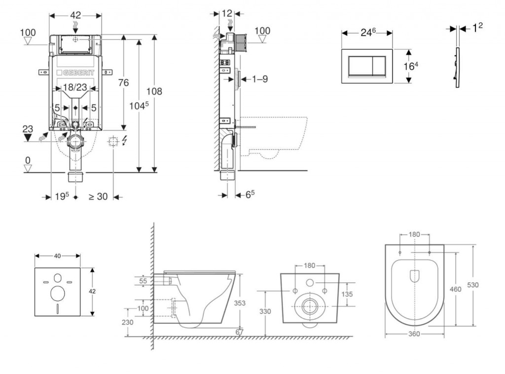 - vybaven trubkovou chráničkou pro přívodní potrubí k připojení sprchovacích WC Geberit AquaClean