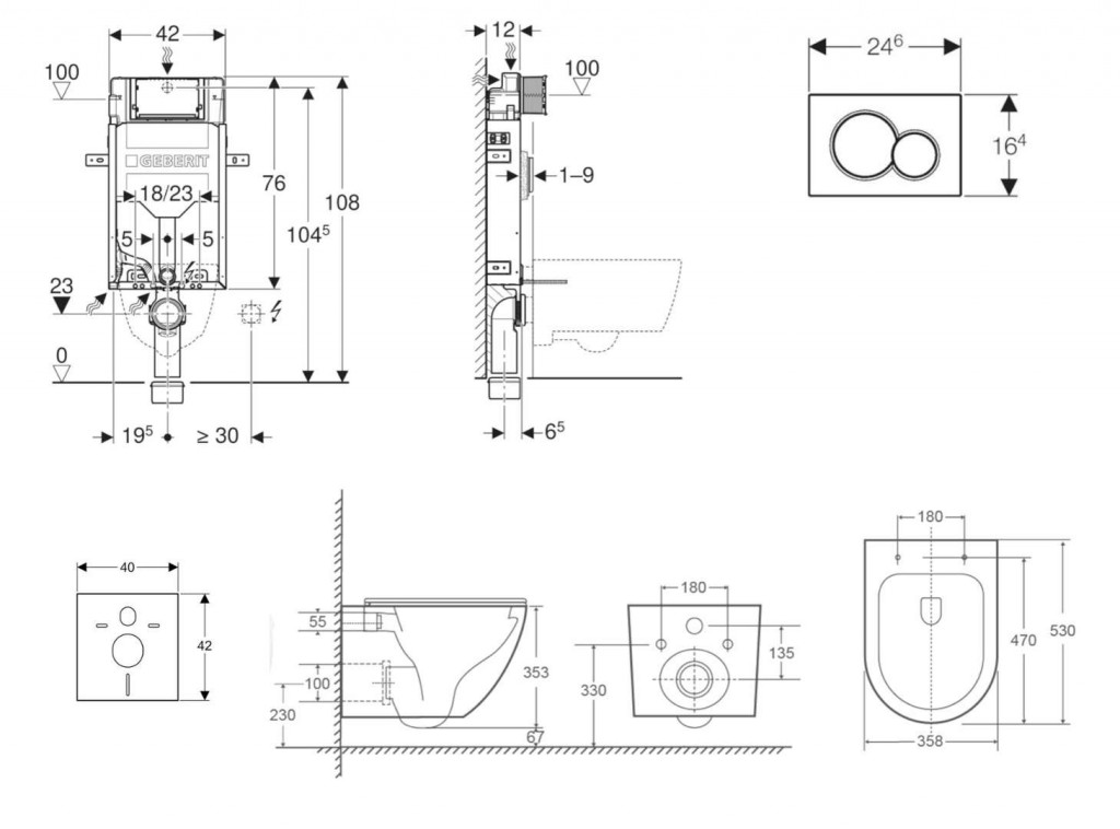- vybaven trubkovou chráničkou pro přívodní potrubí k připojení sprchovacích WC Geberit AquaClean