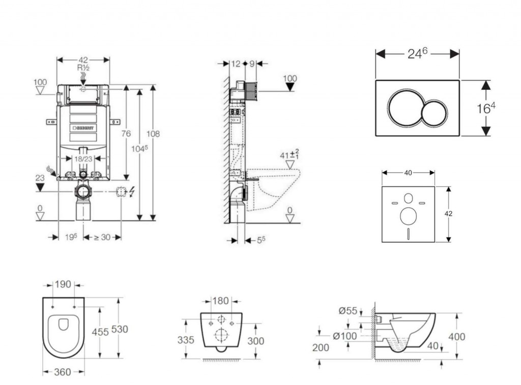 - vybaven trubkovou chráničkou pro přívodní potrubí k připojení sprchovacích WC Geberit AquaClean