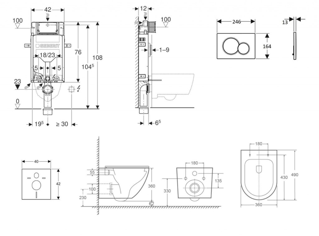 - vybaven trubkovou chráničkou pro přívodní potrubí k připojení sprchovacích WC Geberit AquaClean