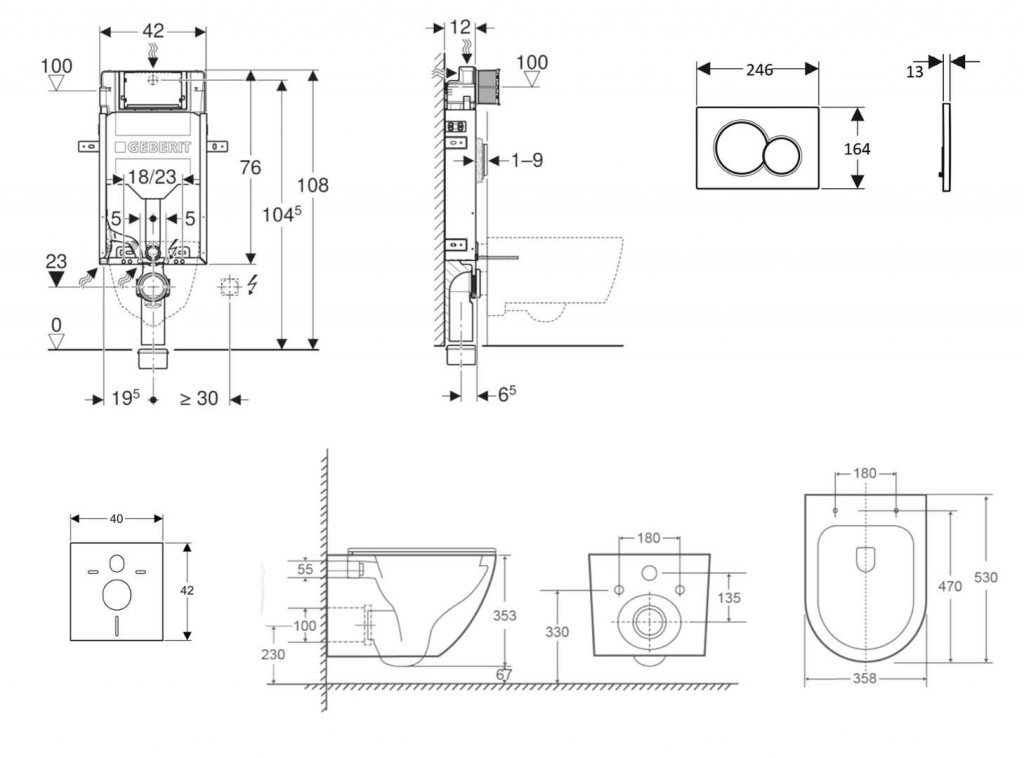 - vybaven trubkovou chráničkou pro přívodní potrubí k připojení sprchovacích WC Geberit AquaClean