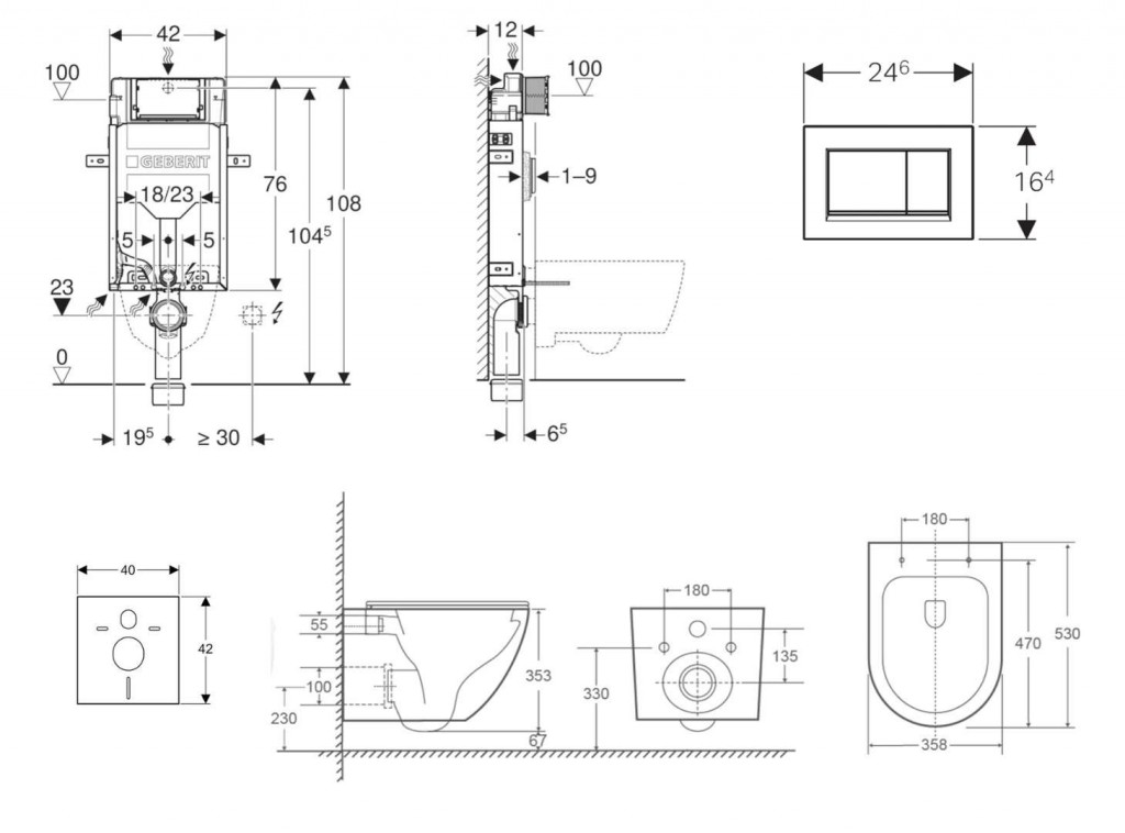- vybaven trubkovou chráničkou pro přívodní potrubí k připojení sprchovacích WC Geberit AquaClean