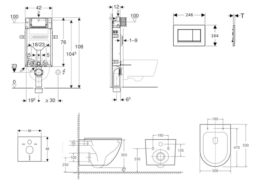 - vybaven trubkovou chráničkou pro přívodní potrubí k připojení sprchovacích WC Geberit AquaClean