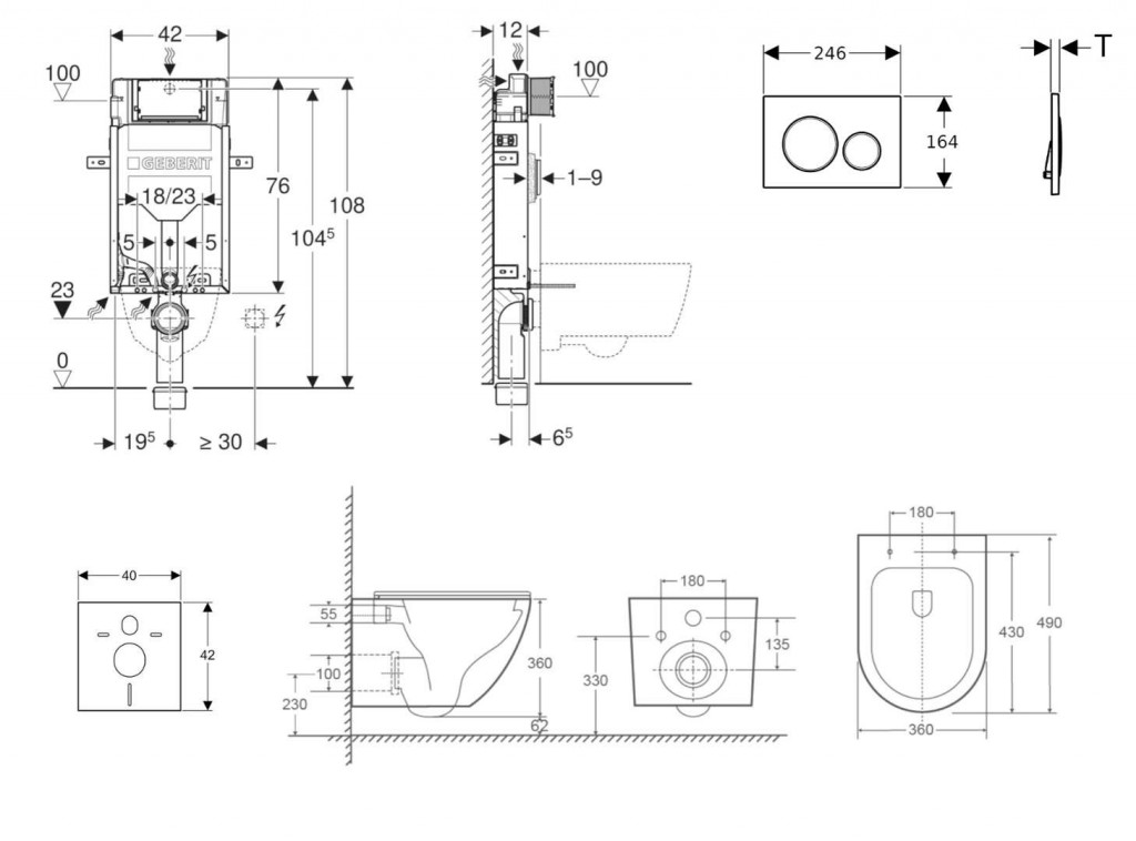 - vybaven trubkovou chráničkou pro přívodní potrubí k připojení sprchovacích WC Geberit AquaClean