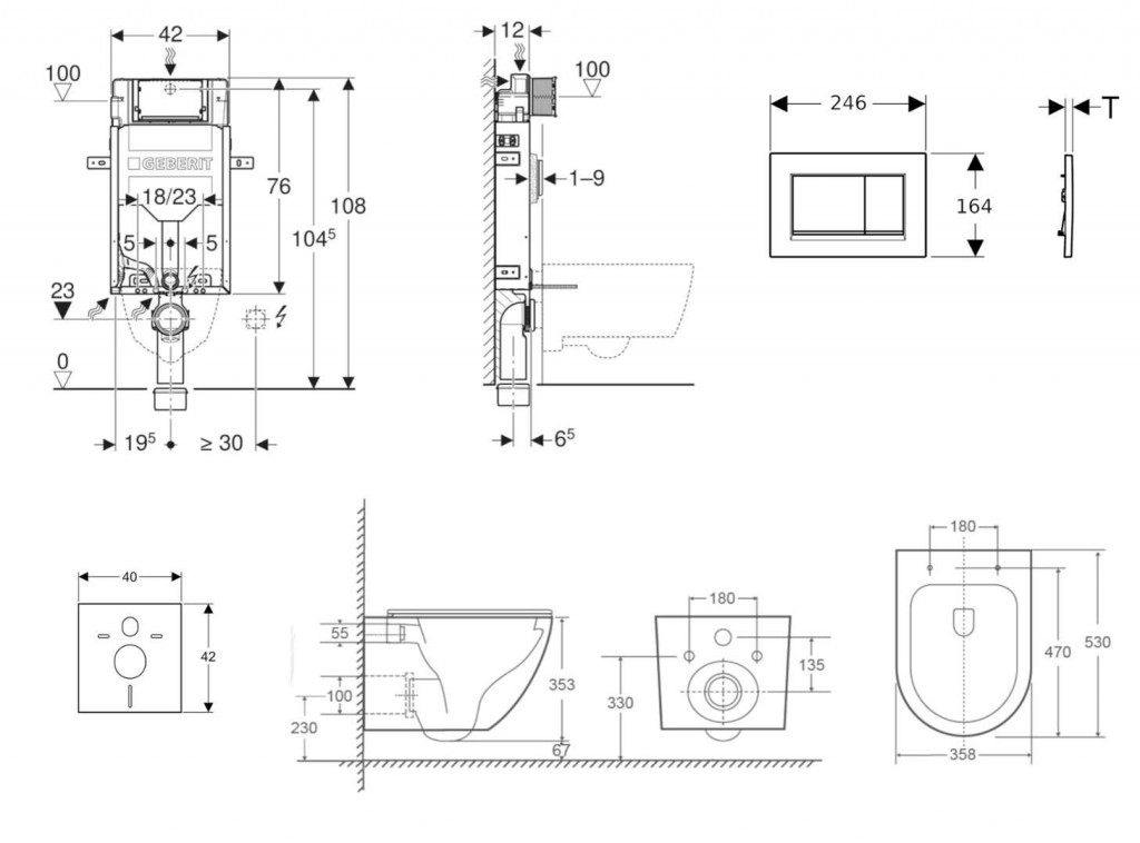 - vybaven trubkovou chráničkou pro přívodní potrubí k připojení sprchovacích WC Geberit AquaClean