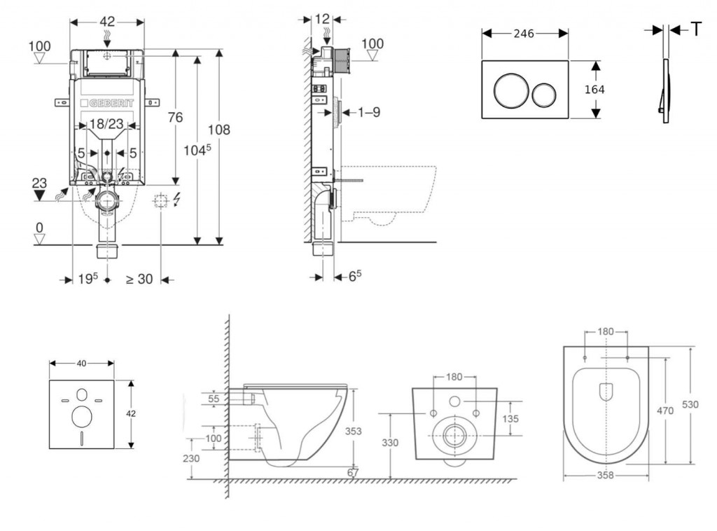 - vybaven trubkovou chráničkou pro přívodní potrubí k připojení sprchovacích WC Geberit AquaClean