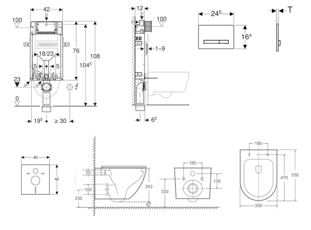 - vybaven trubkovou chráničkou pro přívodní potrubí k připojení sprchovacích WC Geberit AquaClean