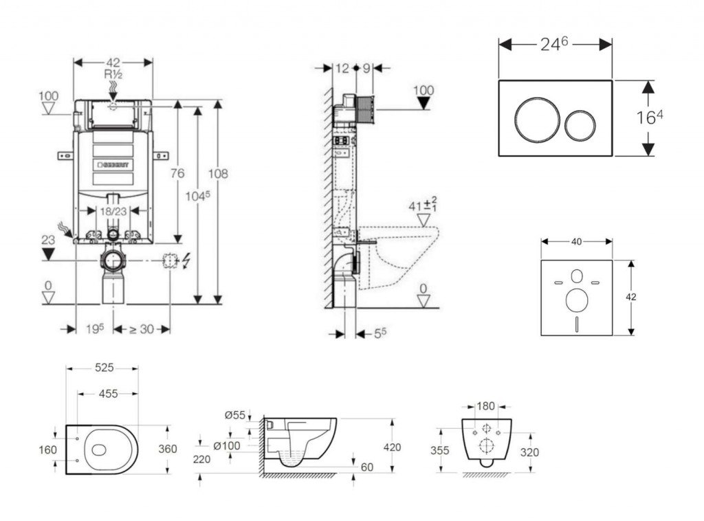 - vybaven trubkovou chráničkou pro přívodní potrubí k připojení sprchovacích WC Geberit AquaClean