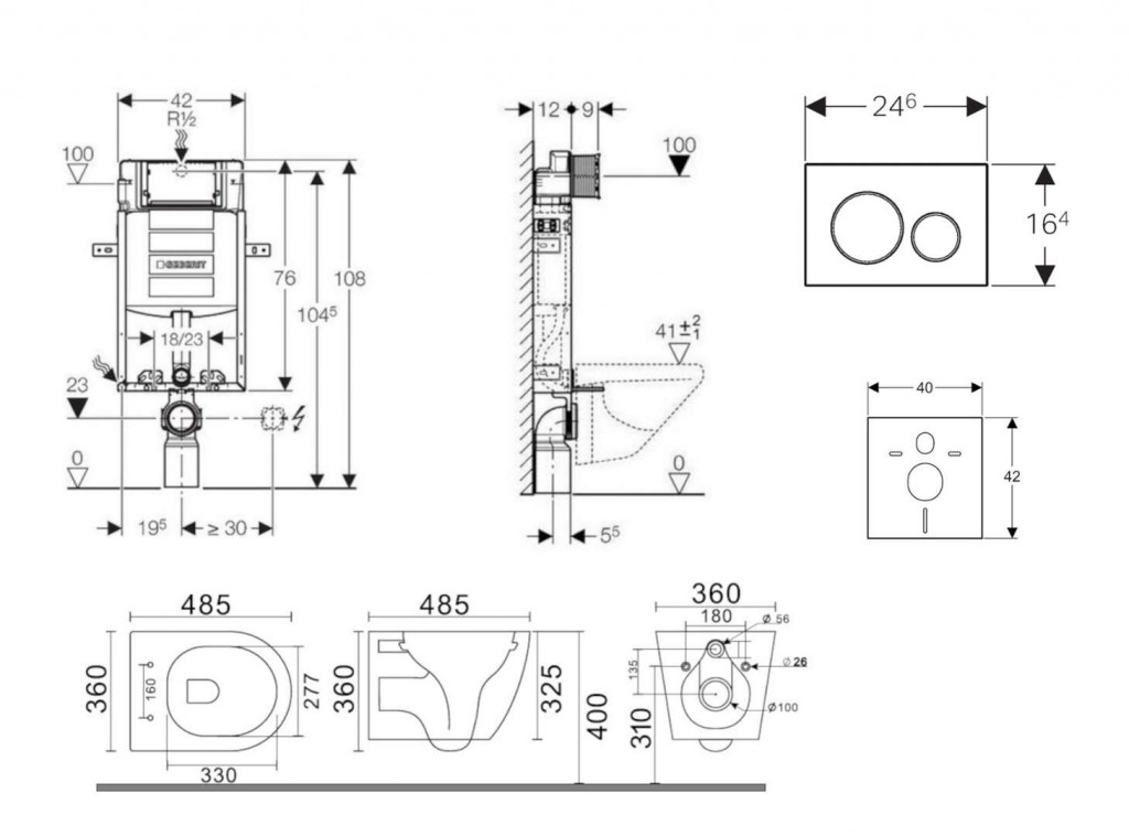 - vybaven trubkovou chráničkou pro přívodní potrubí k připojení sprchovacích WC Geberit AquaClean