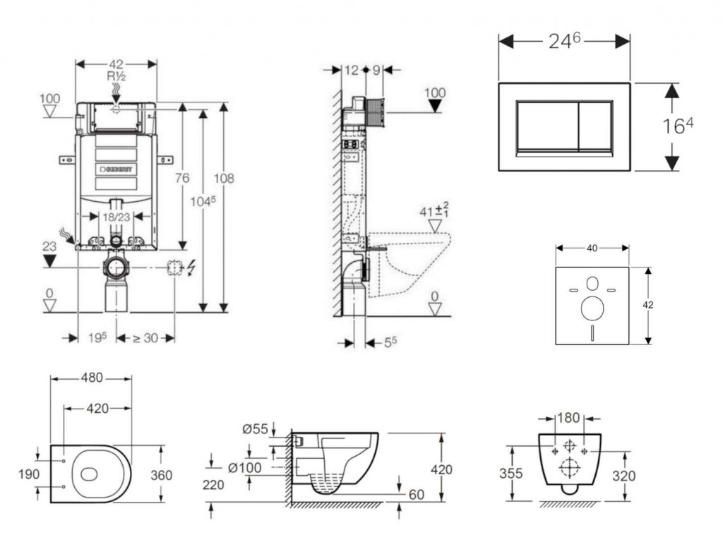 - vybaven trubkovou chráničkou pro přívodní potrubí k připojení sprchovacích WC Geberit AquaClean