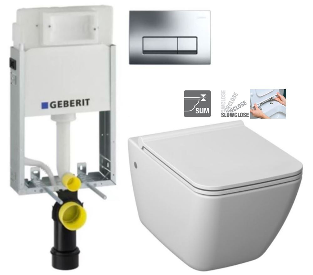 Pozor na výšku osy odpadu, která je oproti běžným klozetům o 3 cm výš. Správné nastavení vypouštěcího ventilu v podomítkovém modulu je splachovací množství 4,5/3l.