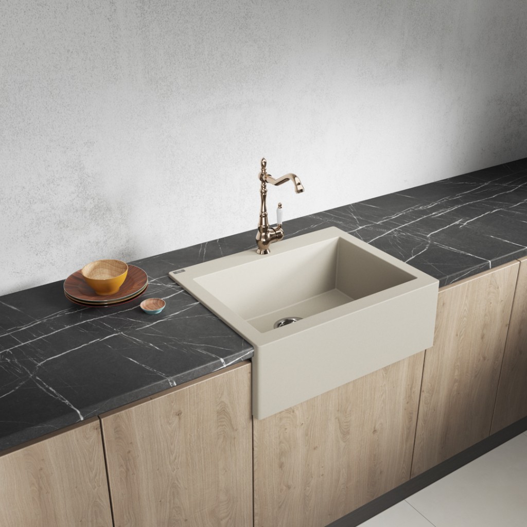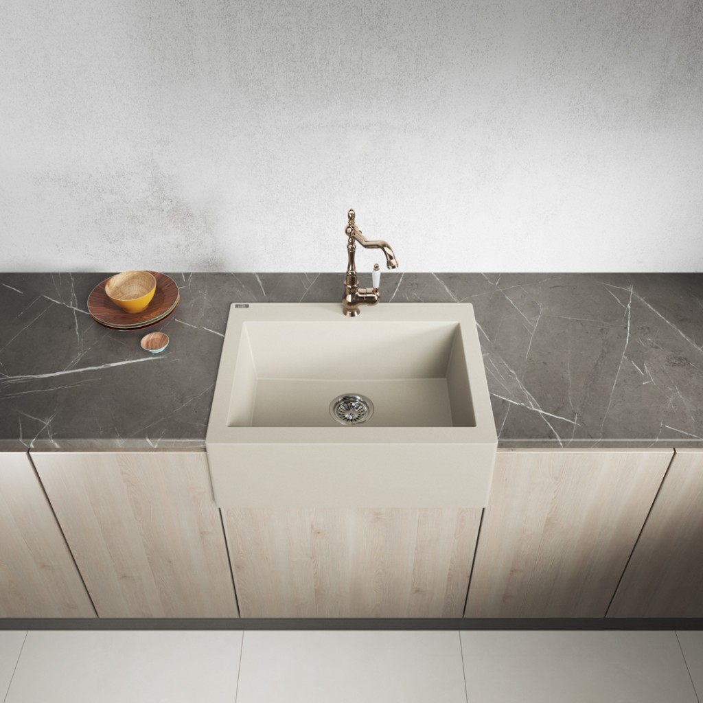 Komodo je unikátní žulový dřez, který se vyznačuje svou jedinečnou, širokou přední částí, viditelnou na pozadí kuchyňského nábytku. Dřez, navržený Marií Kubiak, produktovou manažerkou značky Laveo, je vyroben v Polsku a je jediným žulovým produktem svého druhu na trhu. Unikátní tvar Komoda je ideální pro kuchyně ve skandinávském a provensálském stylu a díky široké škále barev i pro modernější interiéry. Model se vyznačuje velkou, funkční mísou a jeho vyčnívající přední část umožňuje pohybovat se co nejblíže k dřezu a zaujmout pohodlnou polohu šetrnou k zádům během každodenních činností. Komodo se pyšní odolností vůči poškrábání, změně barvy, tepelným šokům a vysokým teplotám (až 250 °C). Spolehlivost žuly také umožňuje, aby byl dřez kryt 10letou zárukou a celostátním servisem. Přední část dřezu, známá také jako „zástěra“, chrání pracovní desku a dvířka skříněk před přímým kontaktem s vodou. Dřez je vybaven sifonem šetřícím místo, který šetří místo ve skříňce a usnadňuje organizaci systémů třídění odpadu. Výrobek je navíc vybaven automatickou zátkou, která usnadňuje otevírání a zavírání odtoku, aniž byste museli ponořovat ruce do vody používané k mytí nádobí.