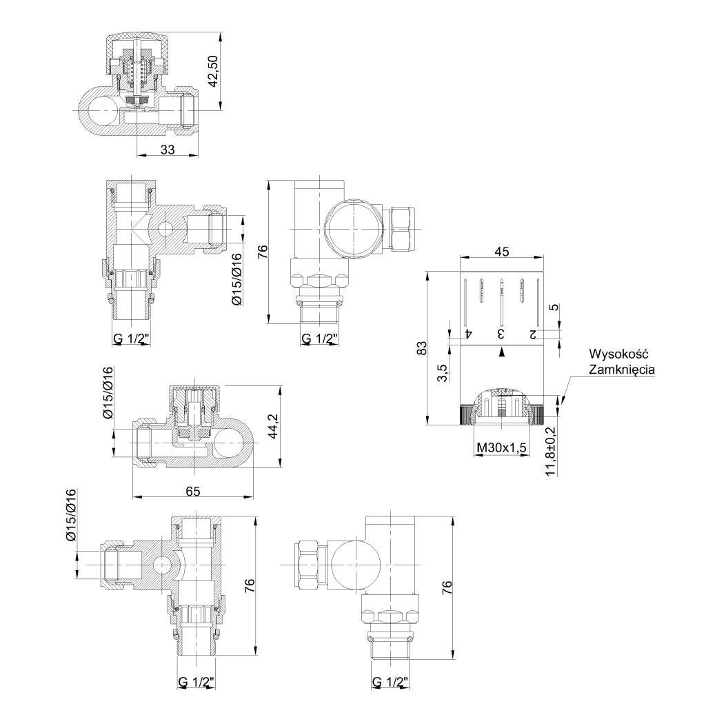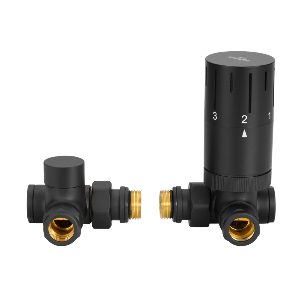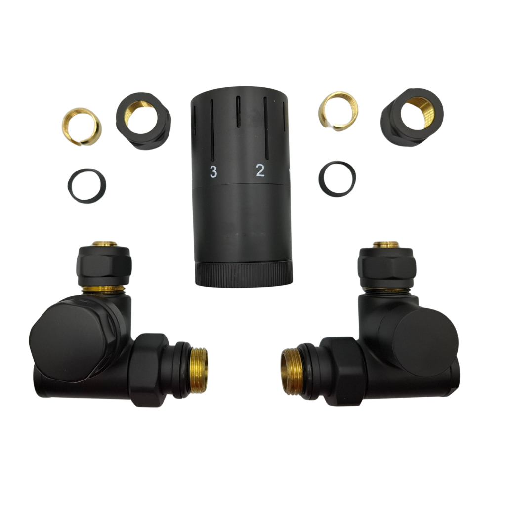 Pro připojení koupelnového radiátoru v měděném nebo PEX systému, levém nebo pravém. Sada obsahuje: - 1/2" spojky radiátorů pro 15mm měděné a 16mm PEX systémy - termostatickou hlavici M30x1,5 - přívodní a vratný ventil. Pro výměnu stran axiální sady (zleva doprava) odšroubujte vložku ze zpětného a přívodního ventilu, prohoďte strany a zašroubujte ji do těles.