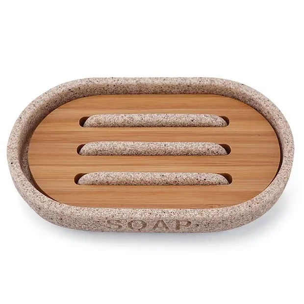 Mýdlenka. Barva pískově béžová. Materiál polyresin, bambusové dřevo.