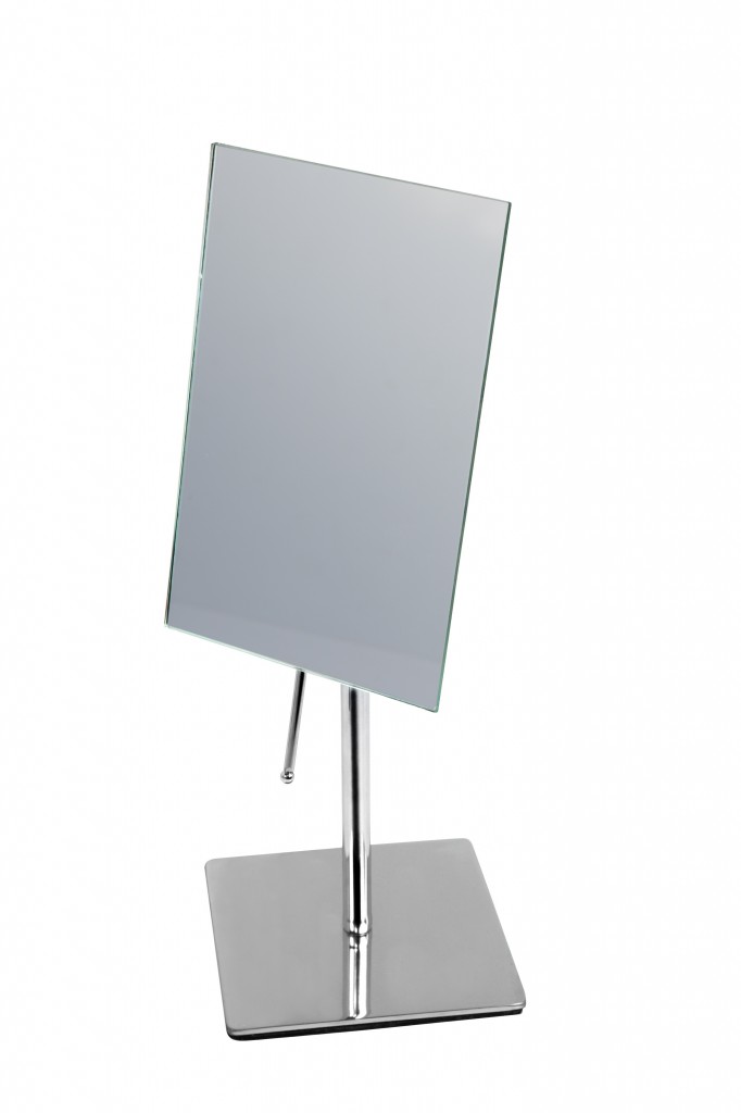 Velmi šikovné a praktické kosmetické zrcadlo s pohodlným nastavením úhlu sklonu. Zrcátko je určeno na postavení a je vyrobeno z velmi kvalitních materiálů a to lesklé pochromované oceli a zrcadla, které mu zajišťují elegantní hranatý vzhled.