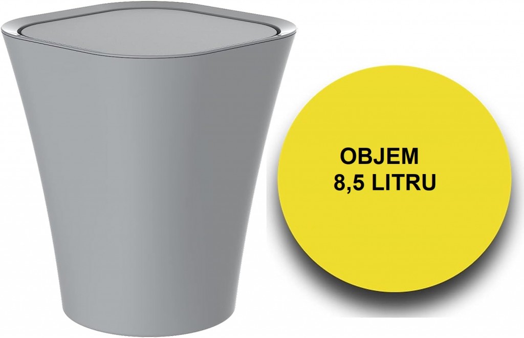 Kosmetický koš, šedý, cca 8,5 l, s otočným víkem